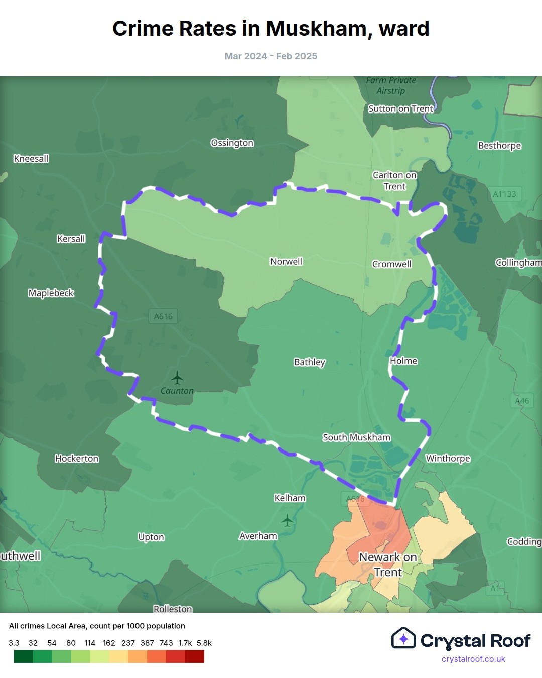 Muskham, (ward) includes areas with the following crime ratings (see map):
