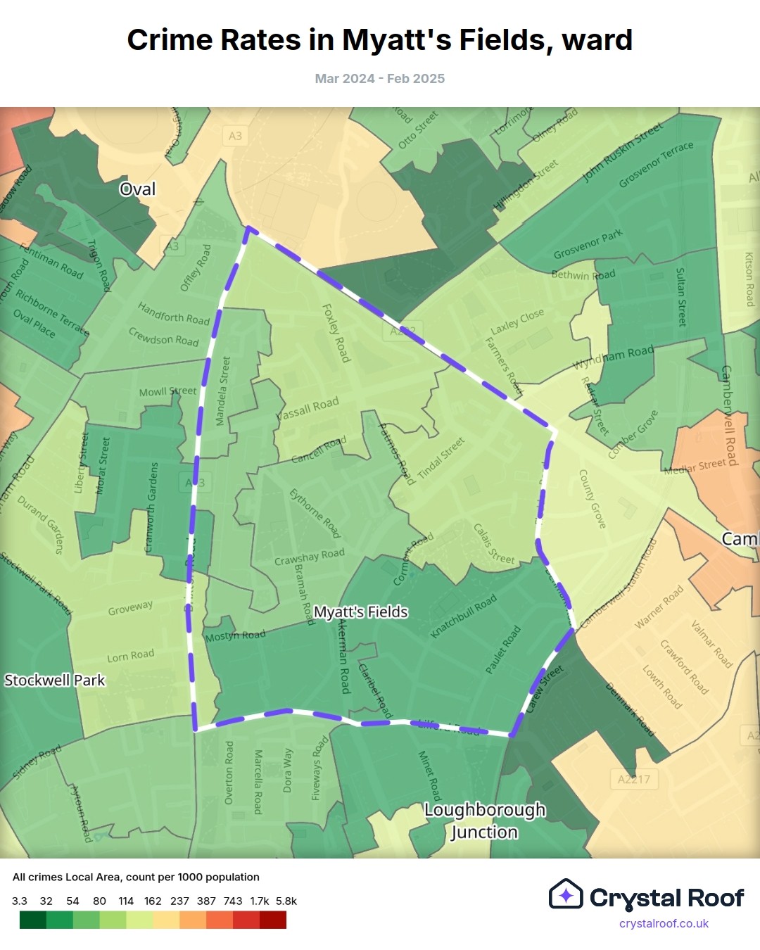 Myatt's Fields, (ward) includes areas with the following crime ratings (see map):