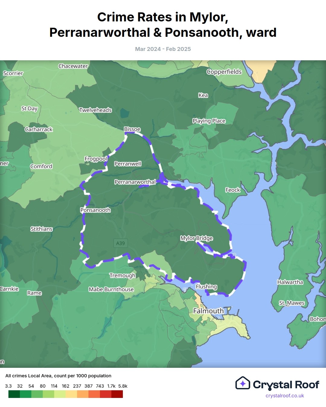 Mylor, Perranarworthal & Ponsanooth, (ward) includes areas with the following crime ratings (see map):