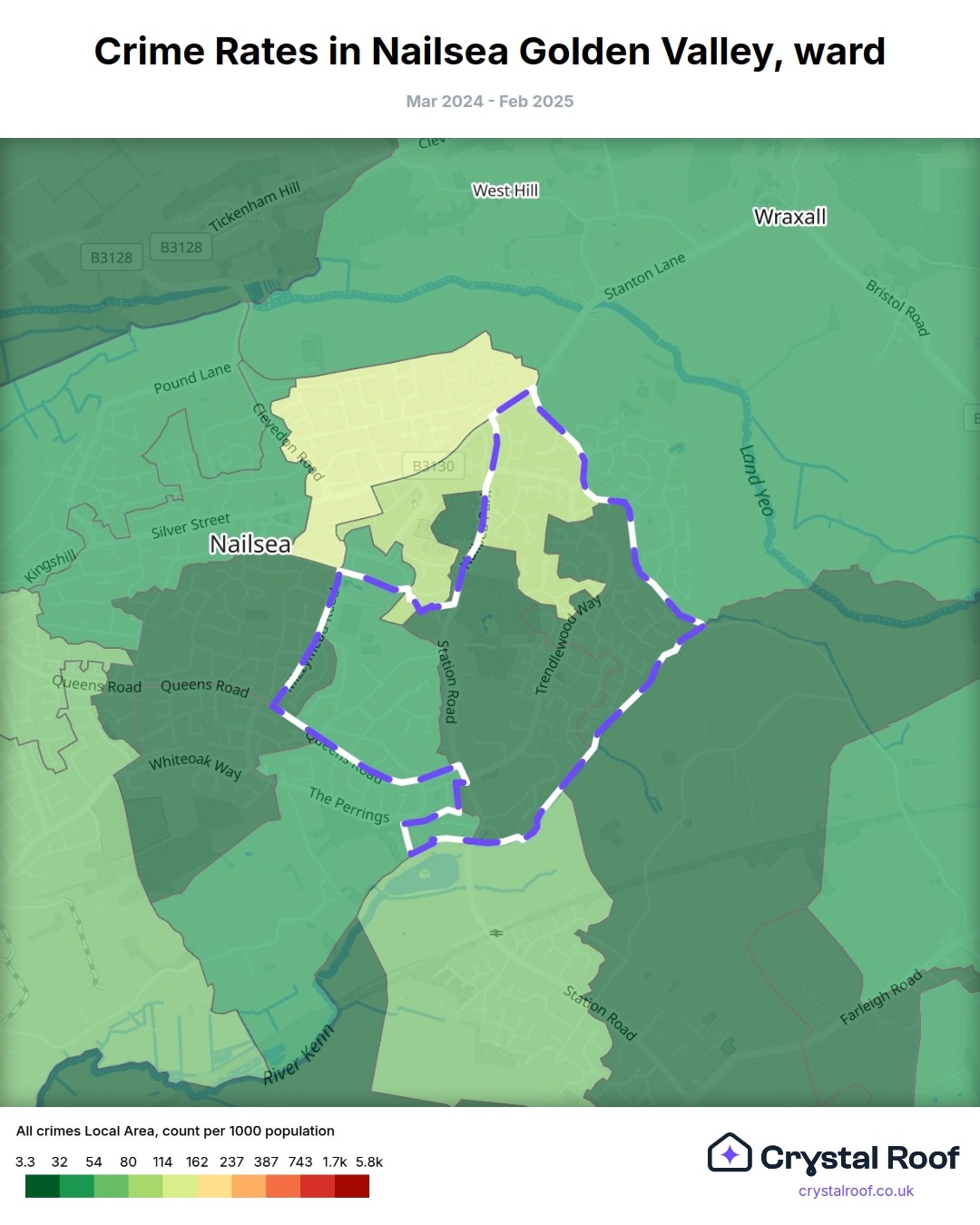 Nailsea Golden Valley, (ward) includes areas with the following crime ratings (see map):