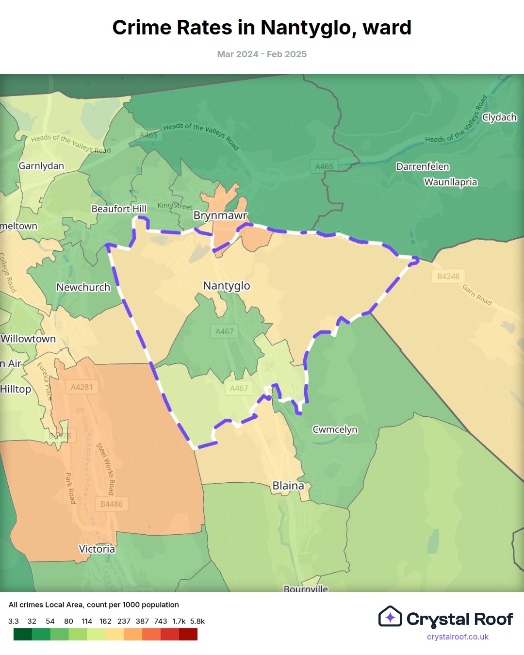 Nantyglo, (ward) includes areas with the following crime ratings (see map):