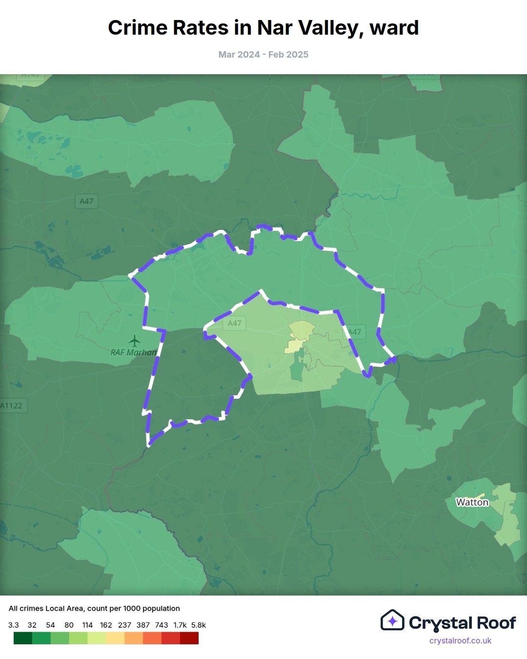 Nar Valley, (ward) includes areas with the following crime ratings (see map):