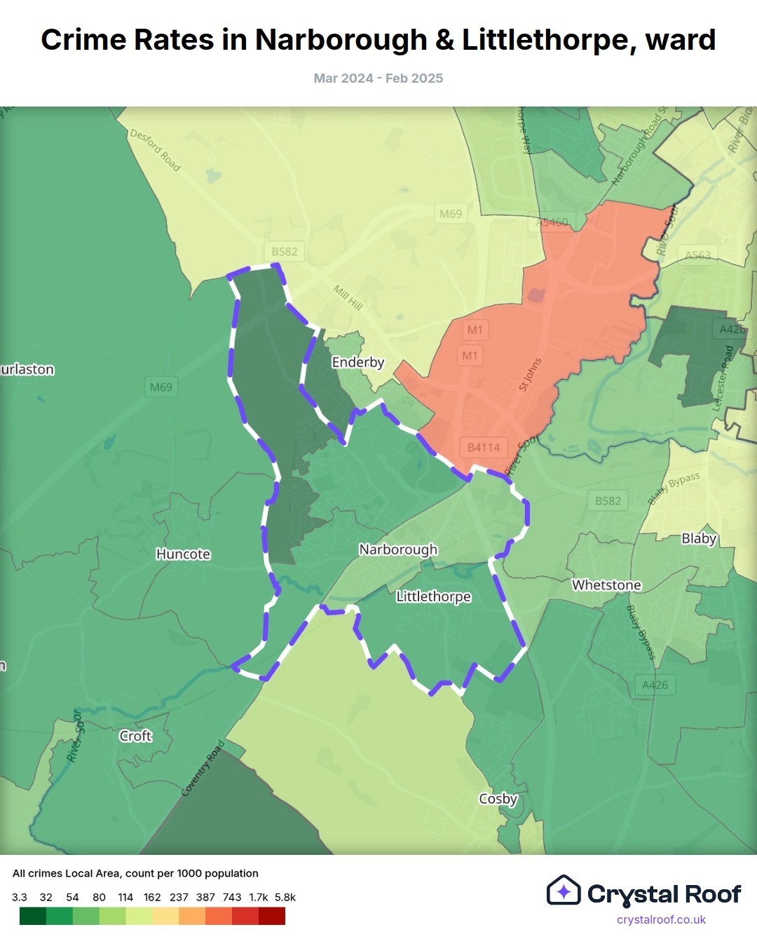 Narborough & Littlethorpe, (ward) includes areas with the following crime ratings (see map):