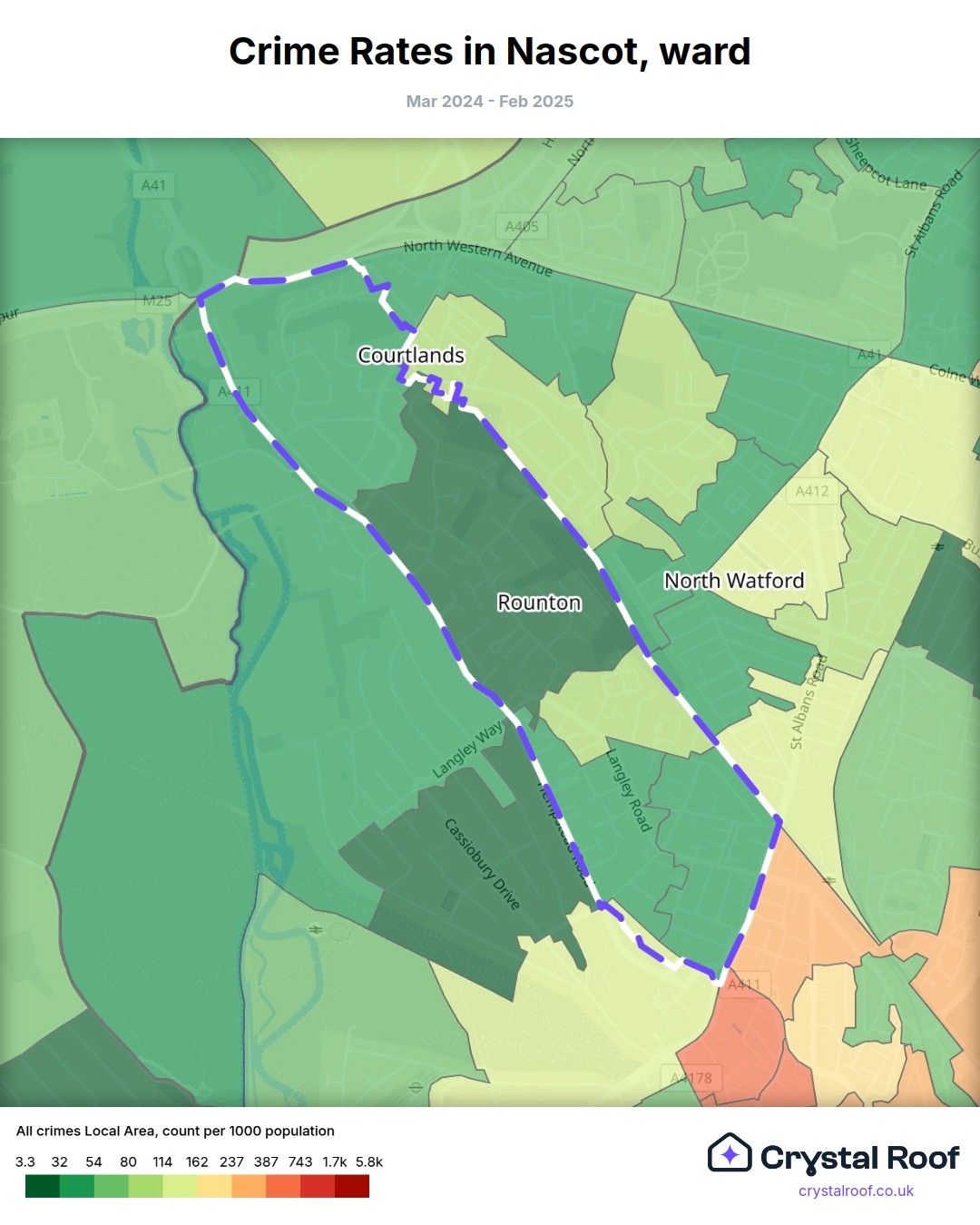 Nascot, (ward) includes areas with the following crime ratings (see map):