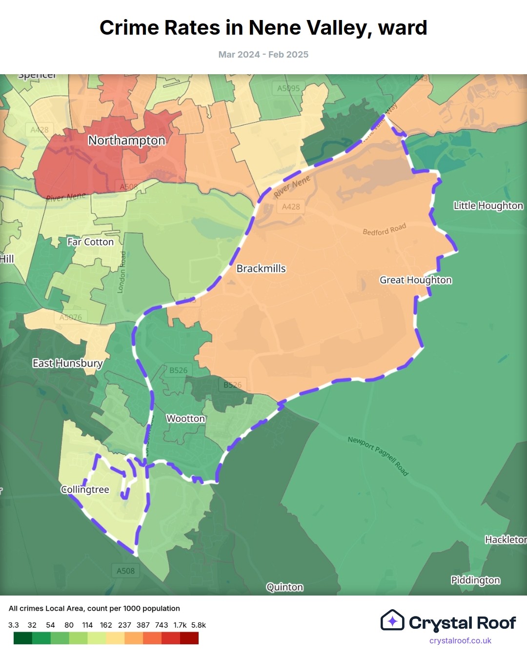 Nene Valley, (ward) includes areas with the following crime ratings (see map):