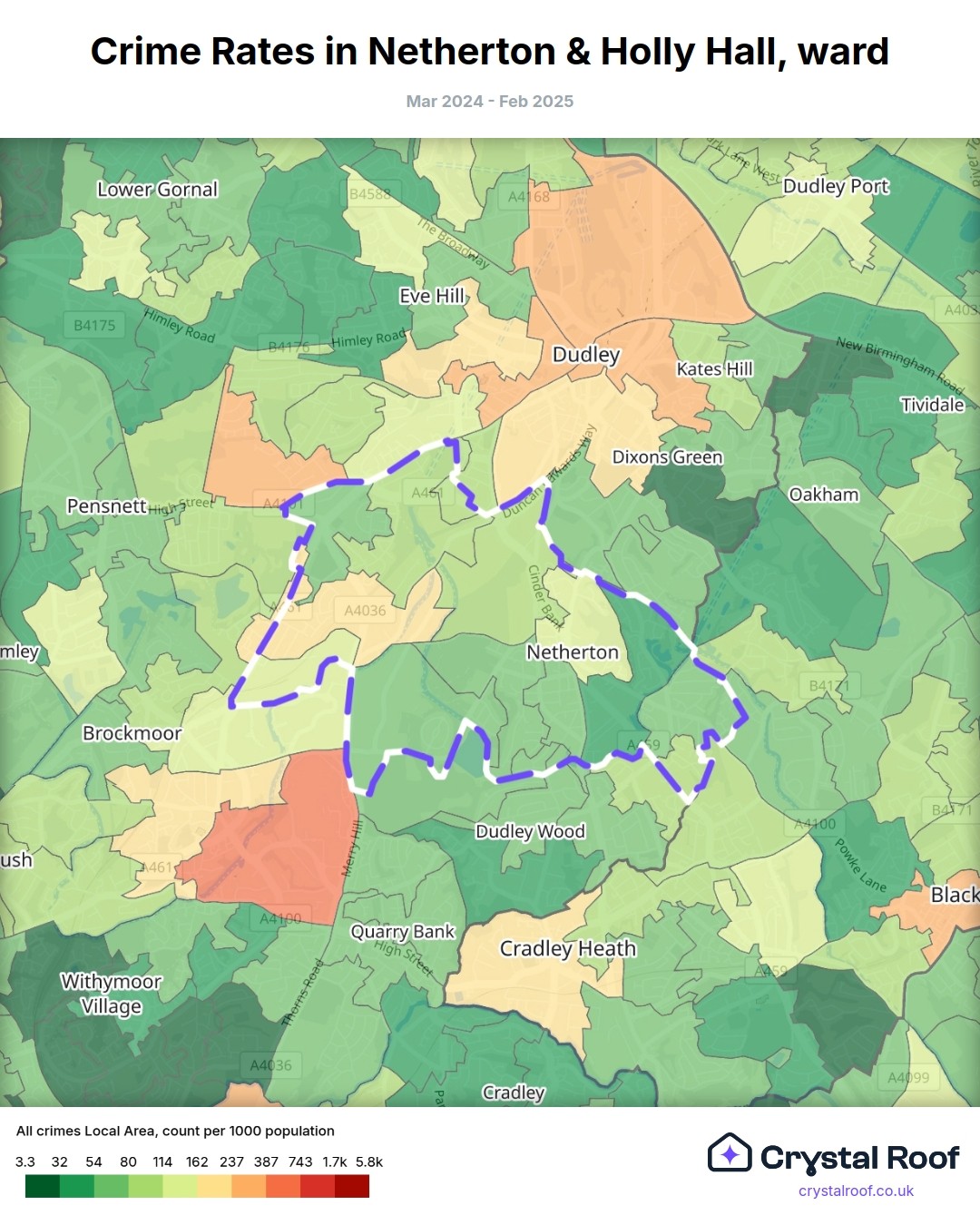Netherton & Holly Hall, (ward) includes areas with the following crime ratings (see map):