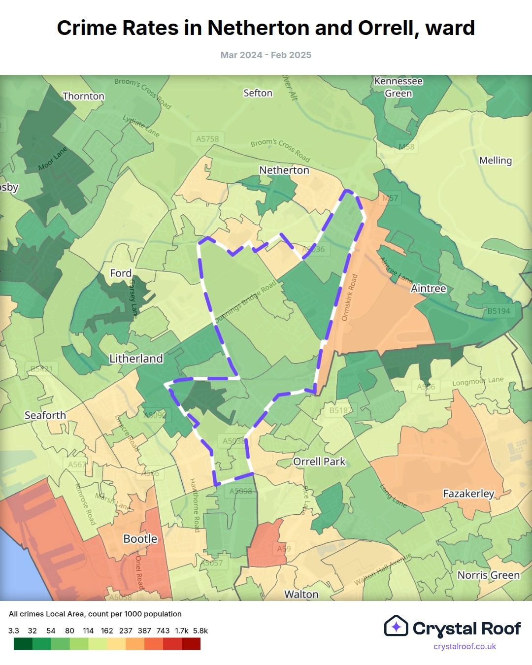 Netherton and Orrell, (ward) includes areas with the following crime ratings (see map):