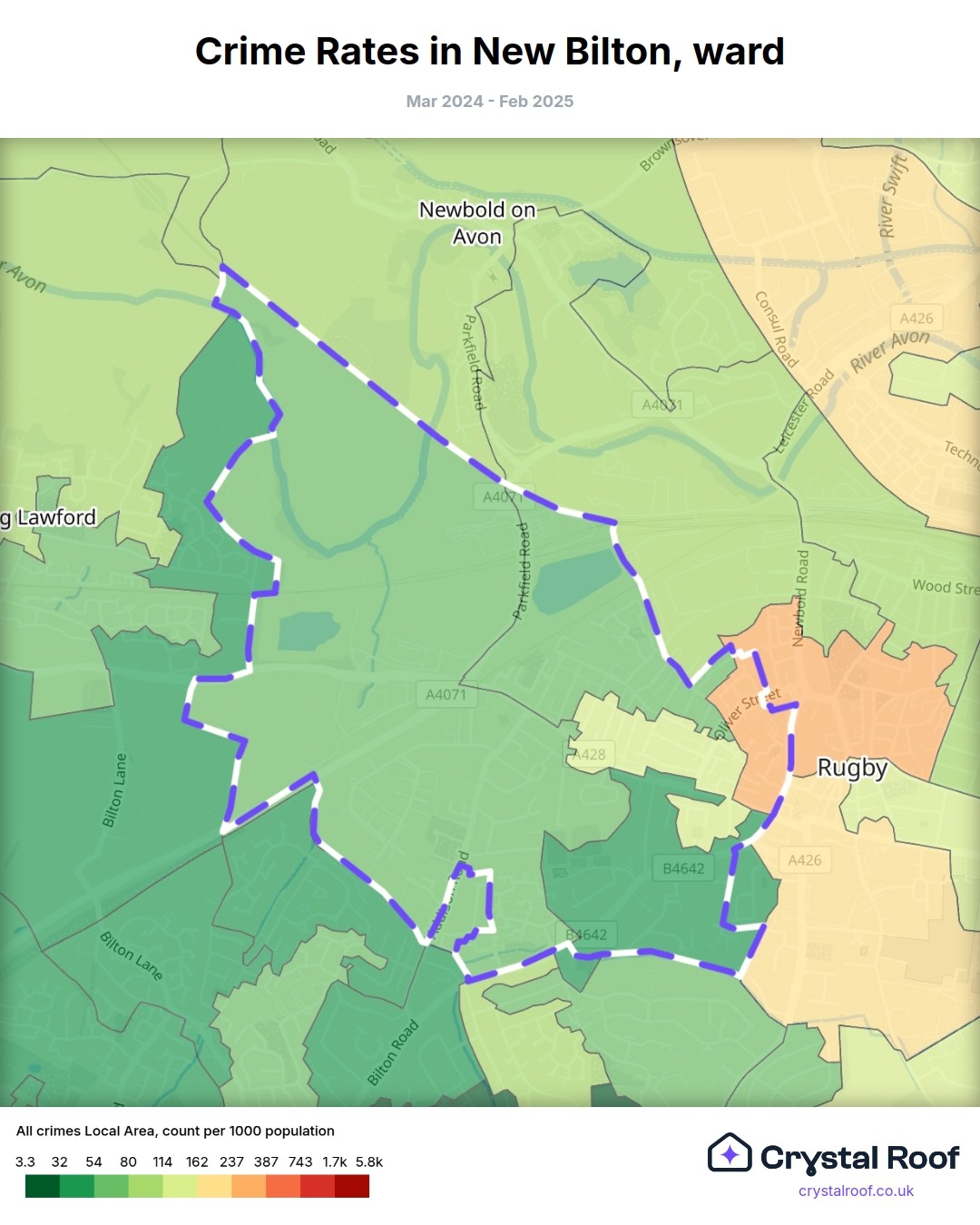 New Bilton, (ward) includes areas with the following crime ratings (see map):