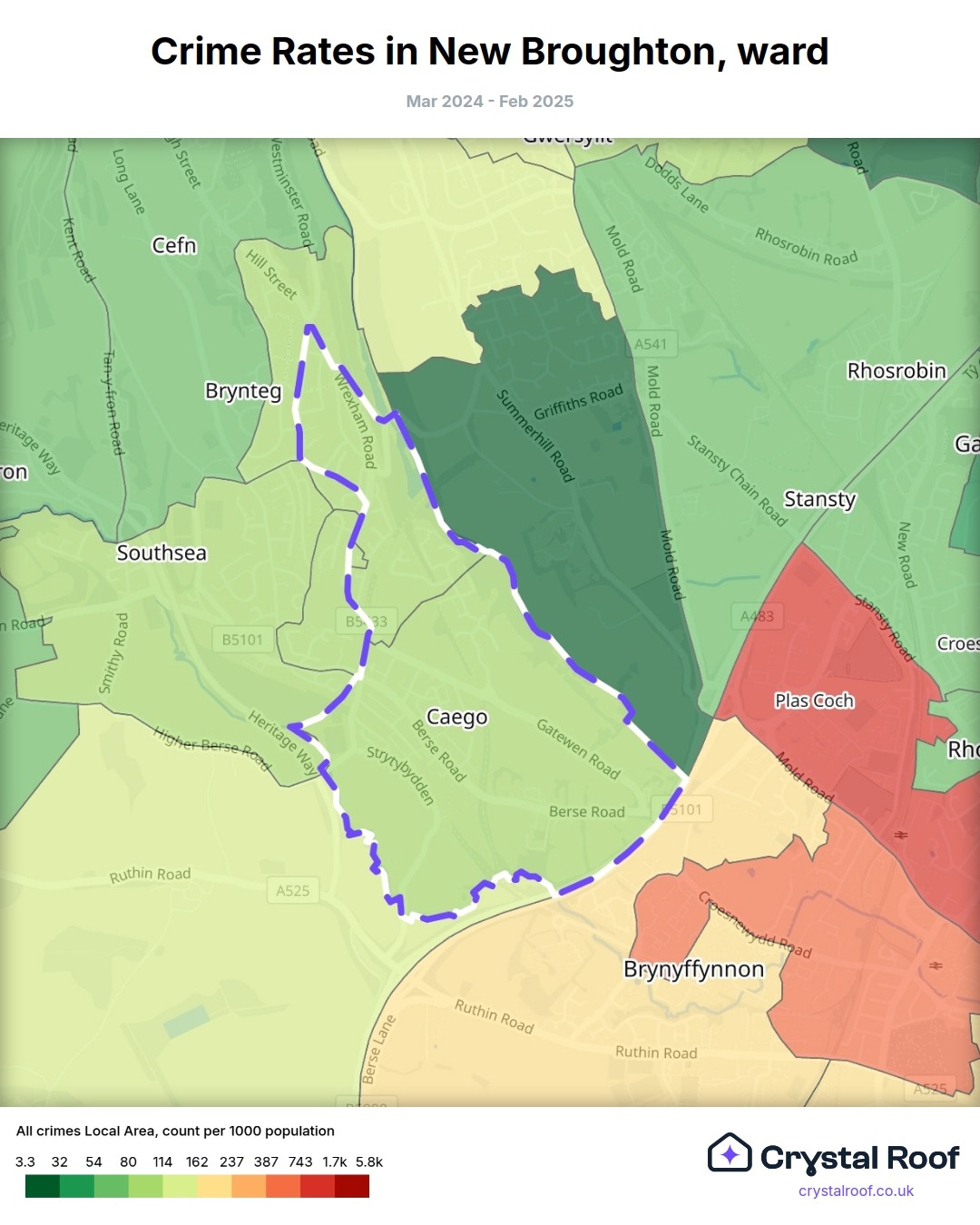 New Broughton, (ward) includes areas with the following crime ratings (see map):