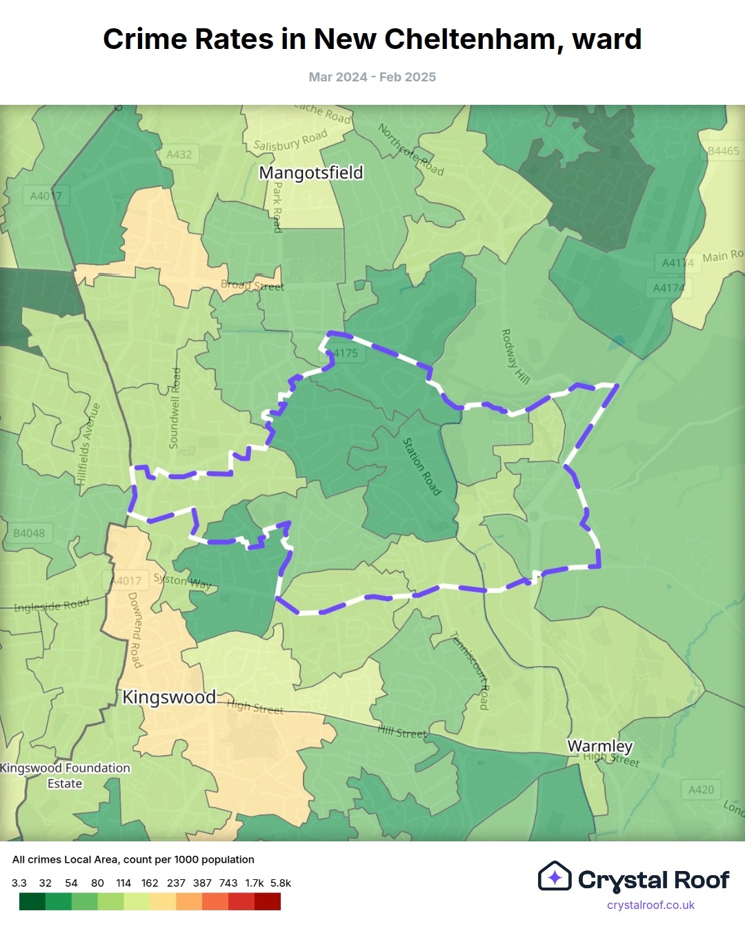 New Cheltenham, (ward) includes areas with the following crime ratings (see map):