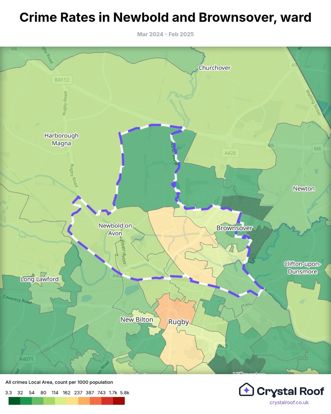 Newbold and Brownsover, (ward) includes areas with the following crime ratings (see map):