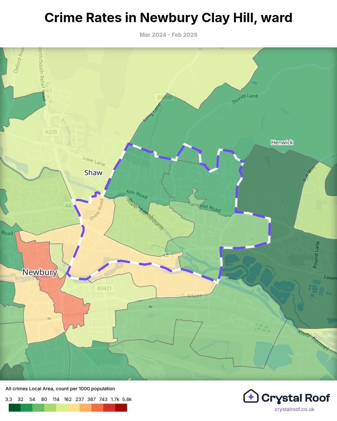 Newbury Clay Hill, (ward) includes areas with the following crime ratings (see map):