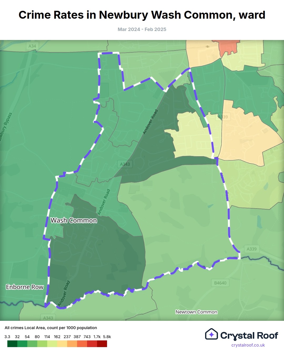 Newbury Wash Common, (ward) includes areas with the following crime ratings (see map):
