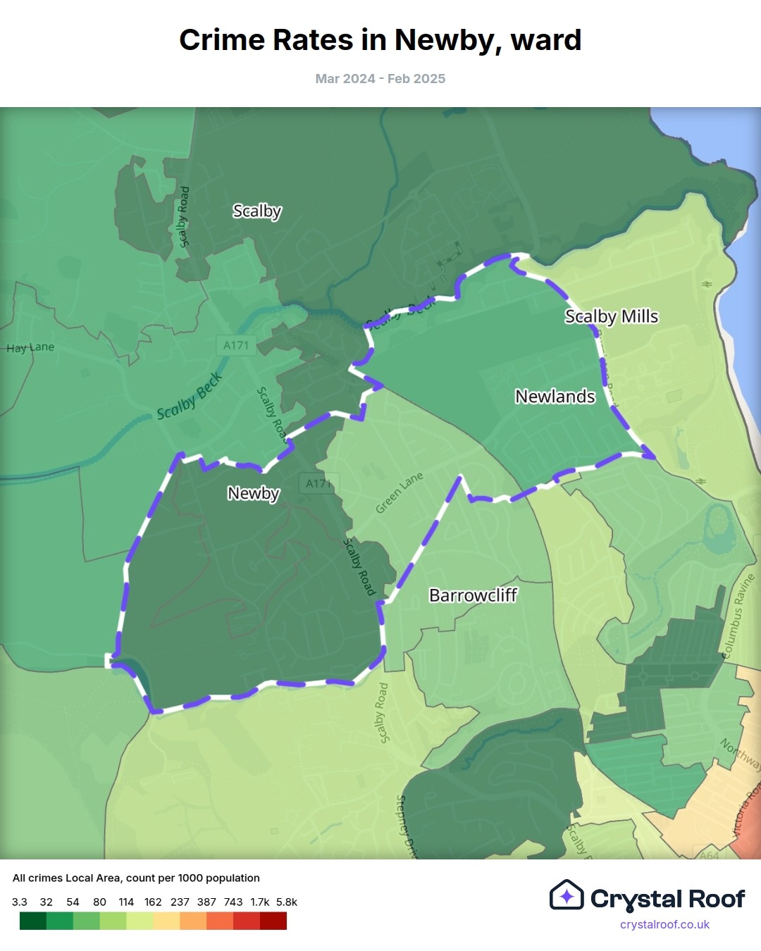 Newby, (ward) includes areas with the following crime ratings (see map):