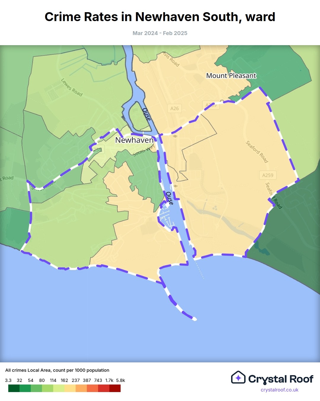 Newhaven South, (ward) includes areas with the following crime ratings (see map):