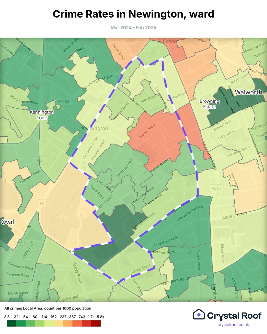 Newington, (ward) includes areas with the following crime ratings (see map):