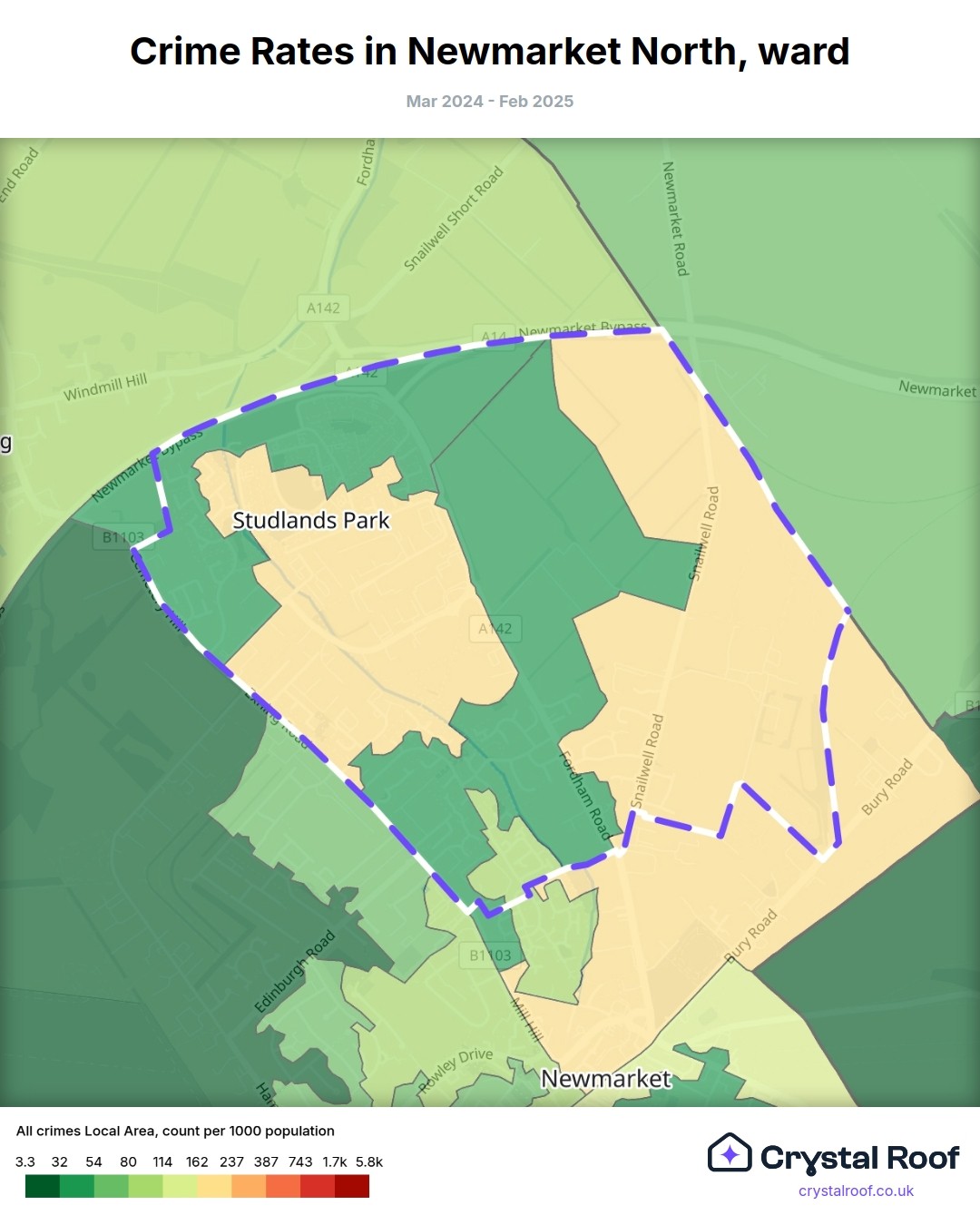 Newmarket North, (ward) includes areas with the following crime ratings (see map):