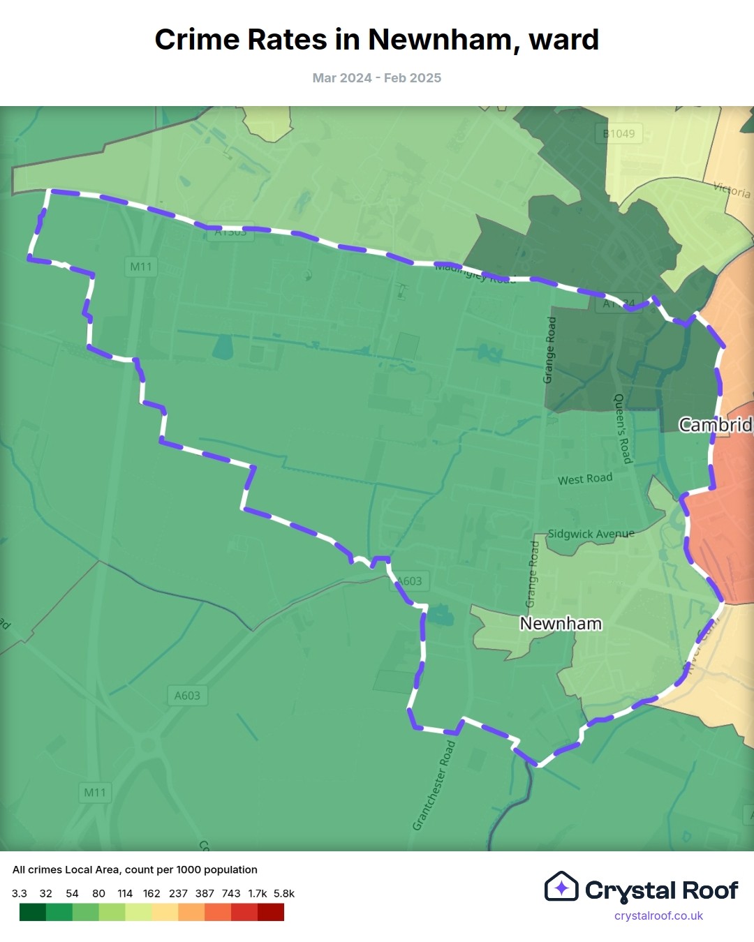 Newnham, (ward) includes areas with the following crime ratings (see map):