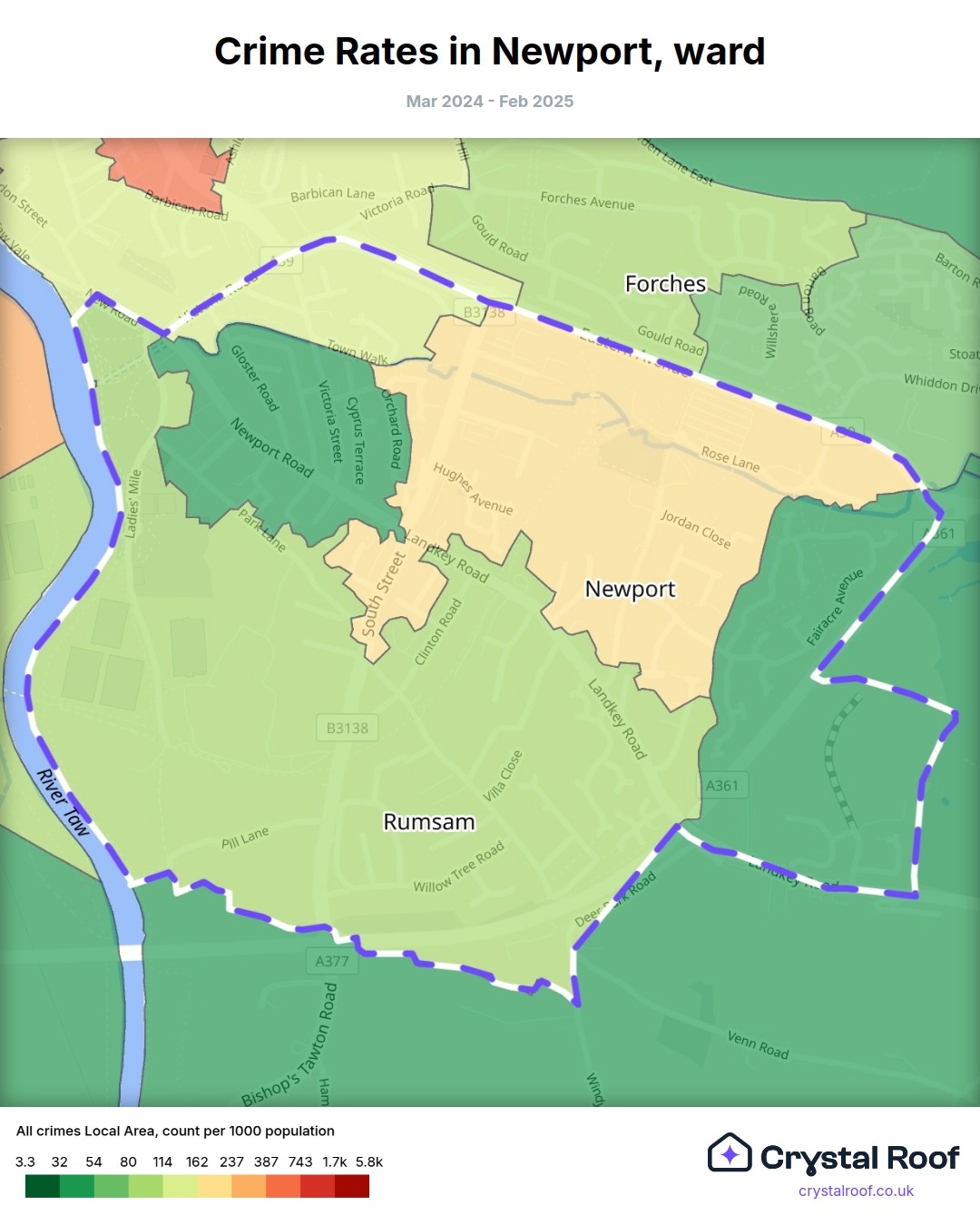 Newport, (ward) includes areas with the following crime ratings (see map):