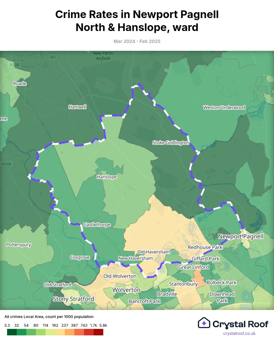 Newport Pagnell North & Hanslope, (ward) includes areas with the following crime ratings (see map):