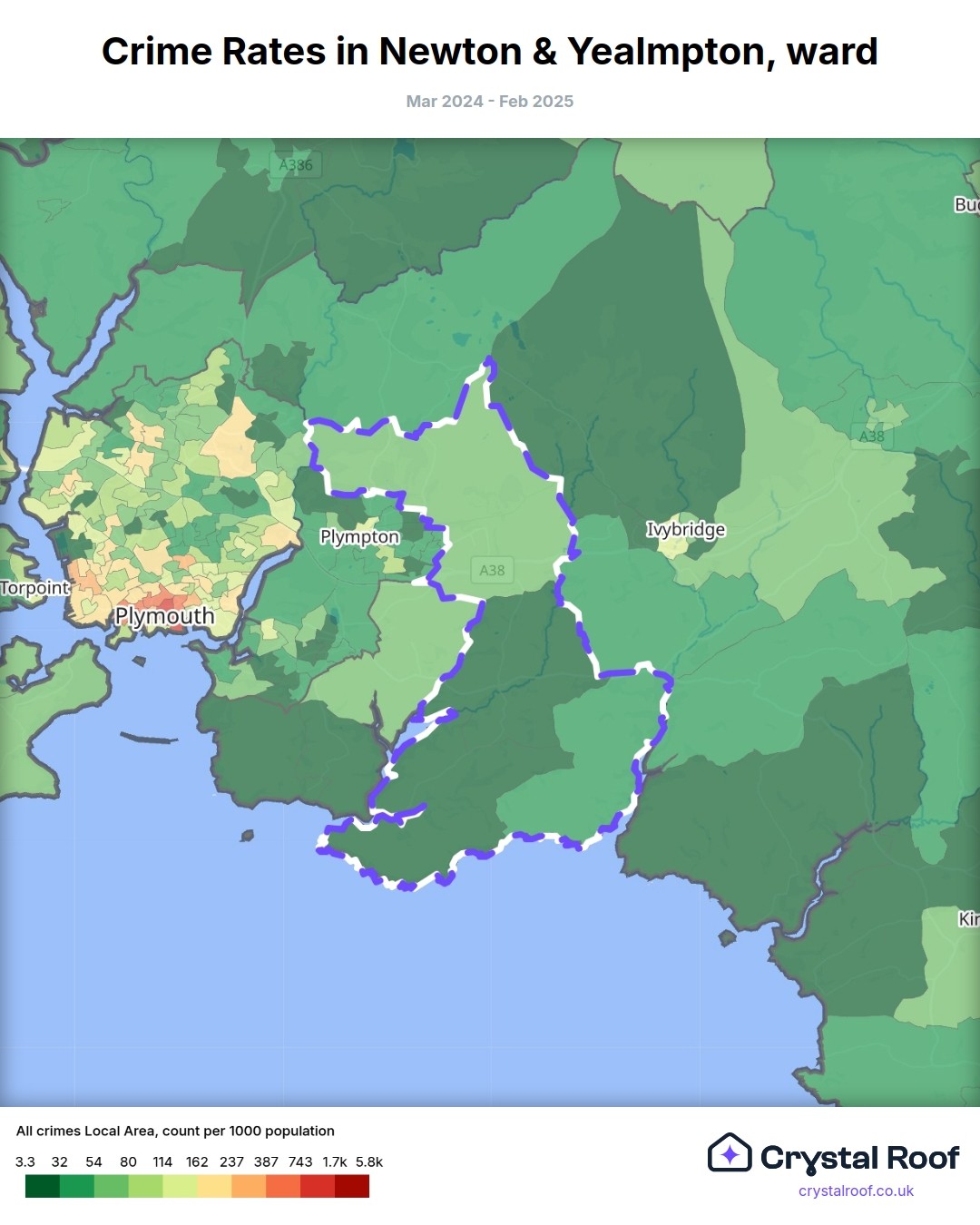 Newton & Yealmpton, (ward) includes areas with the following crime ratings (see map):