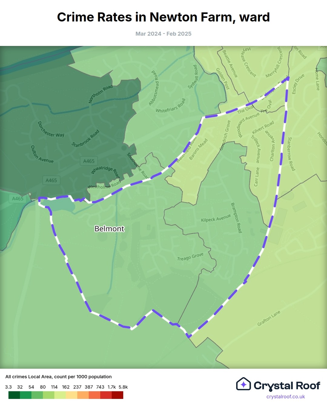 Newton Farm, (ward) includes areas with the following crime ratings (see map):