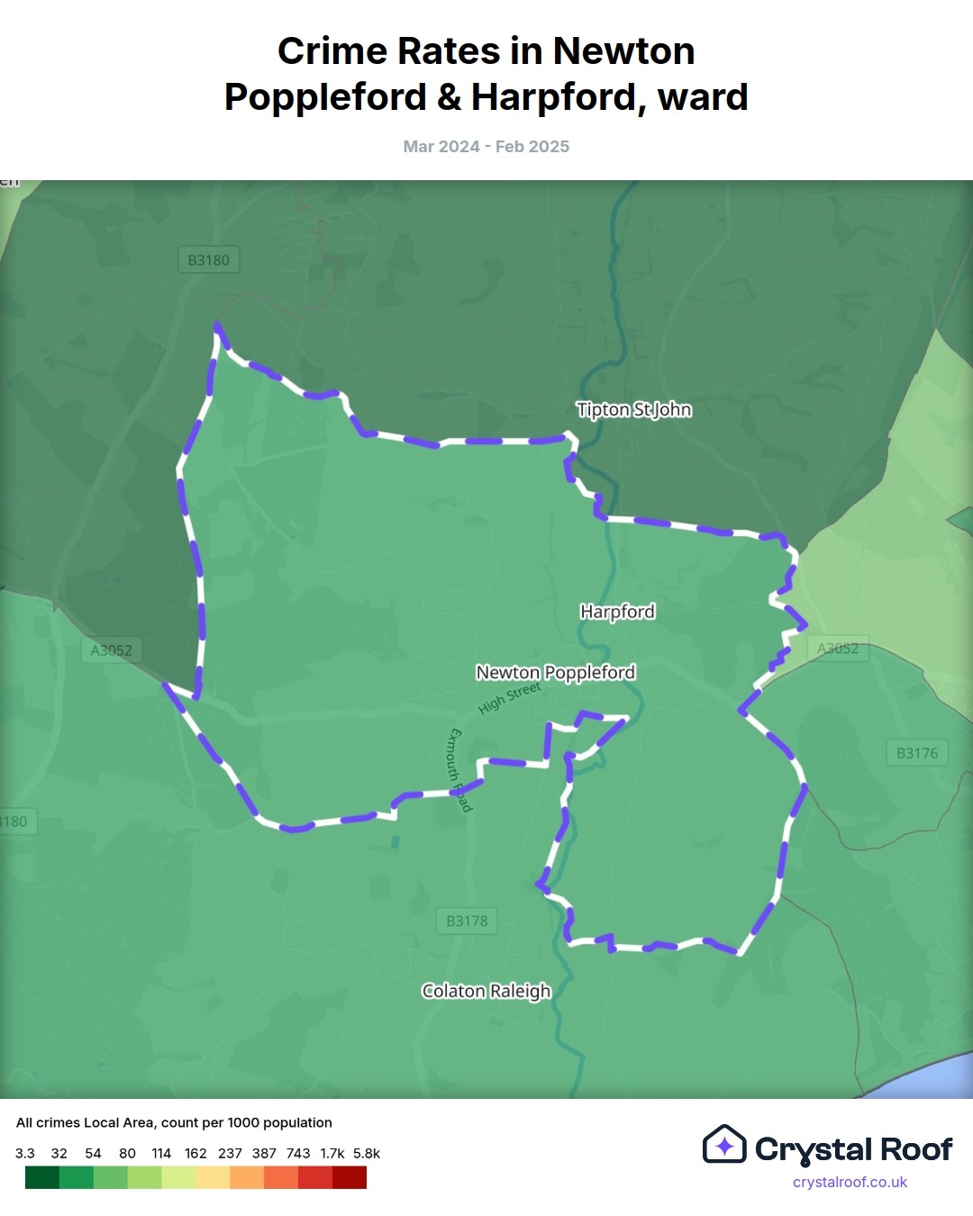 Newton Poppleford & Harpford, (ward) includes areas with the following crime ratings (see map):