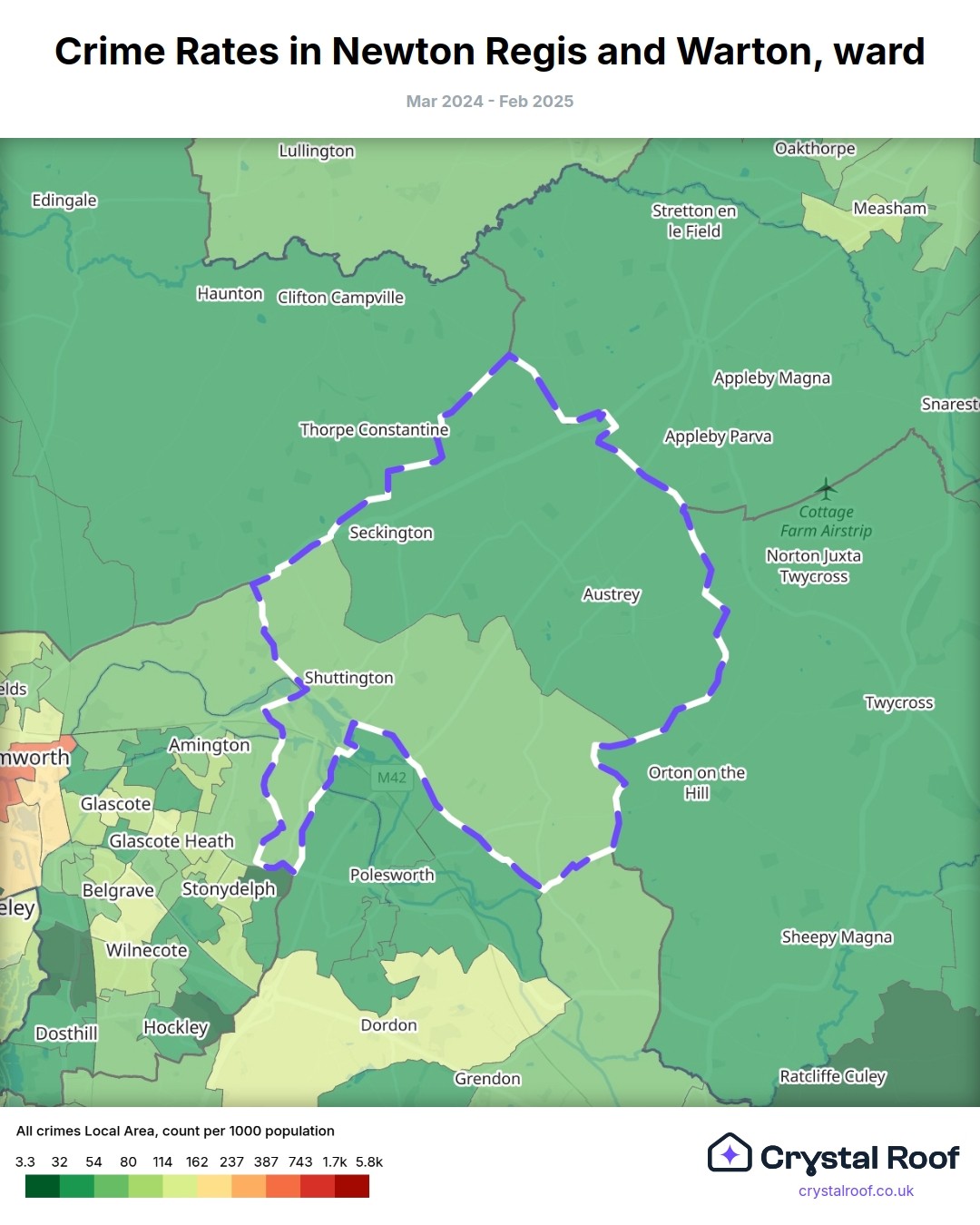 Newton Regis and Warton, (ward) includes areas with the following crime ratings (see map):