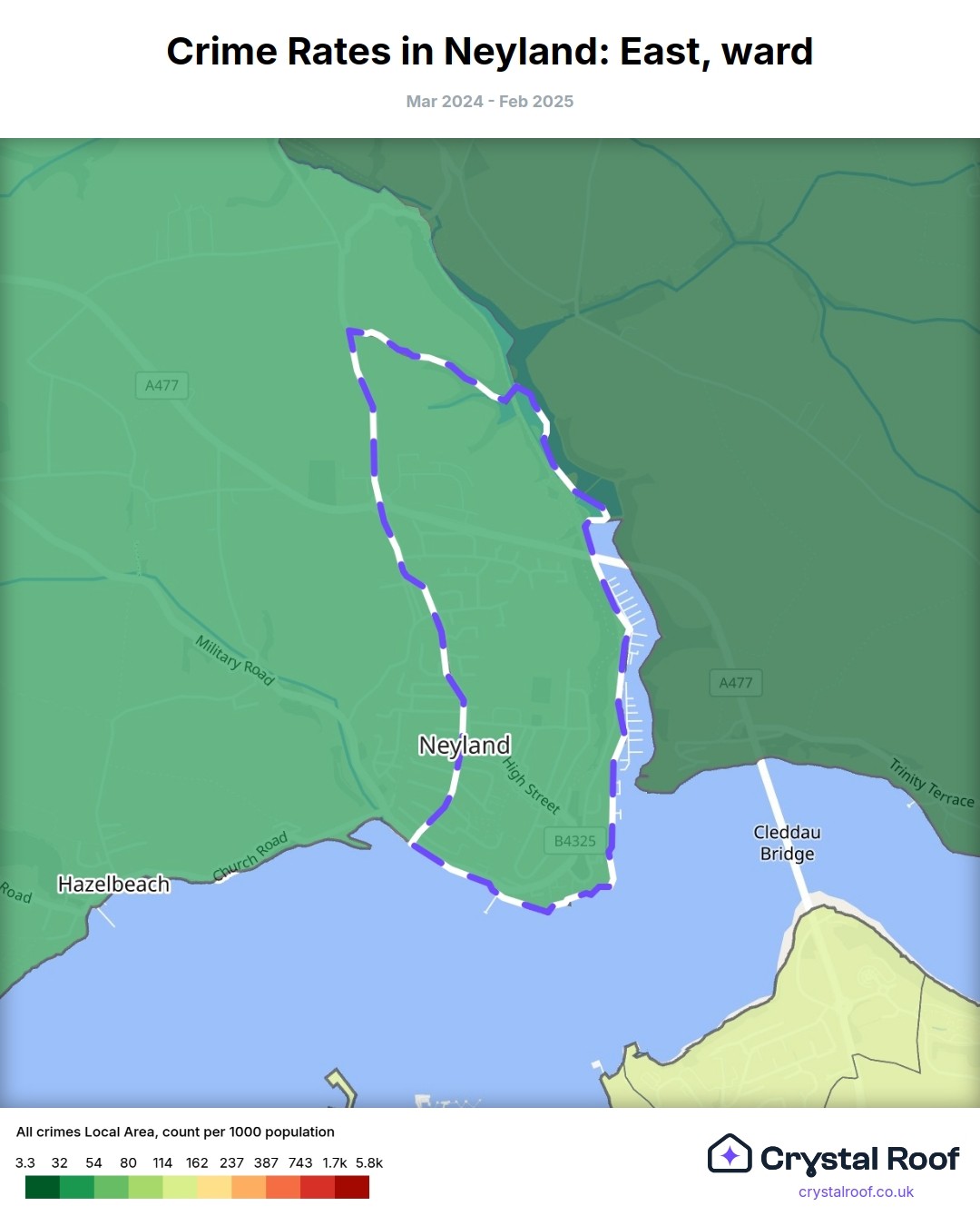 Neyland: East, (ward) includes areas with the following crime ratings (see map):