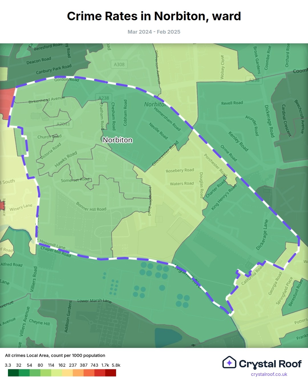 Norbiton, (ward) includes areas with the following crime ratings (see map):