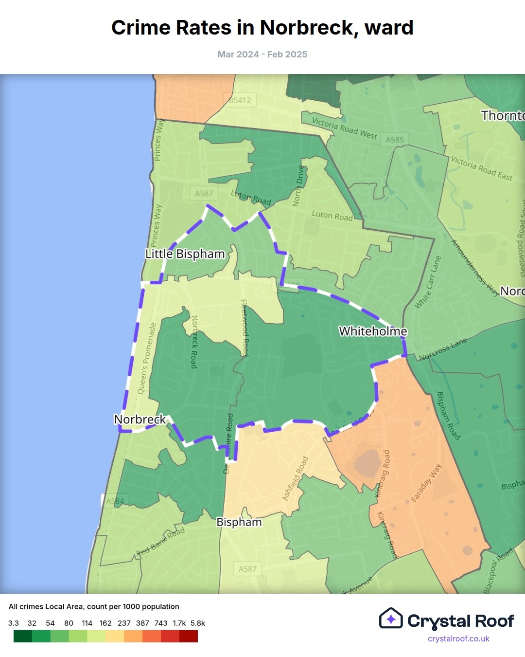 Norbreck, (ward) includes areas with the following crime ratings (see map):