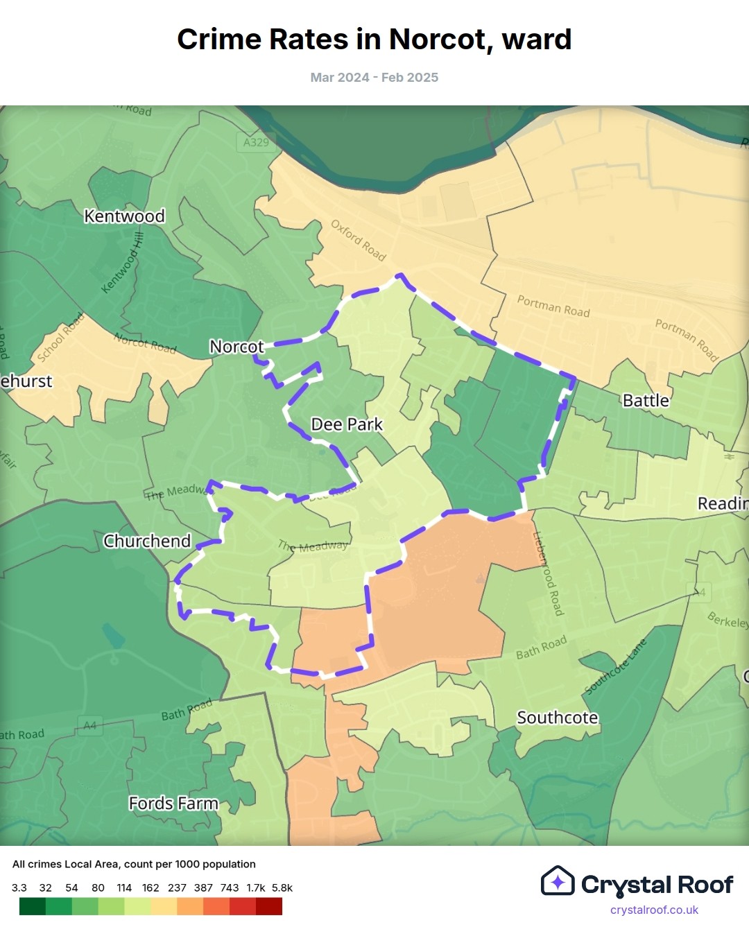 Norcot, (ward) includes areas with the following crime ratings (see map):