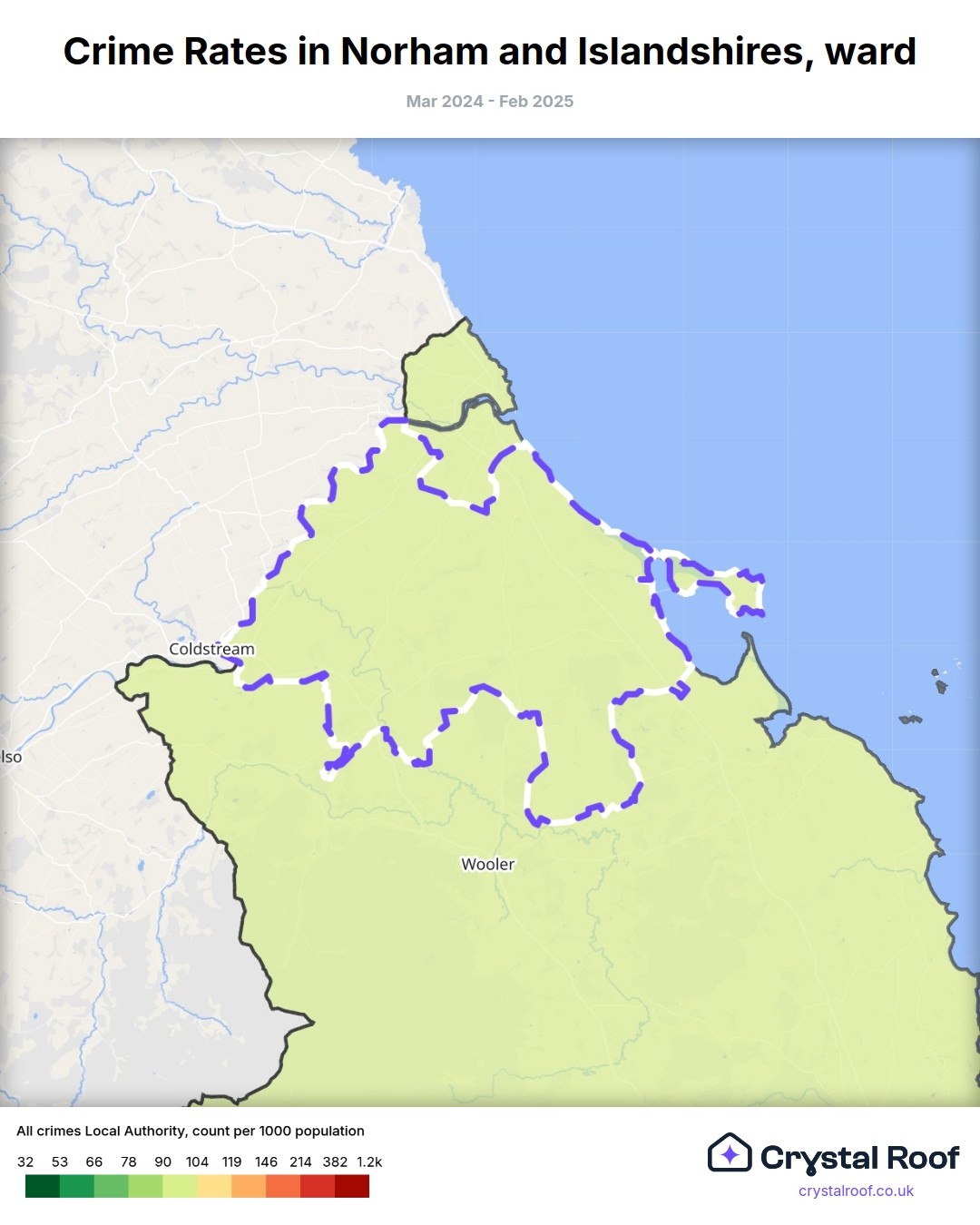 Norham & Islandshires, (ward) includes areas with the following crime ratings (see map):