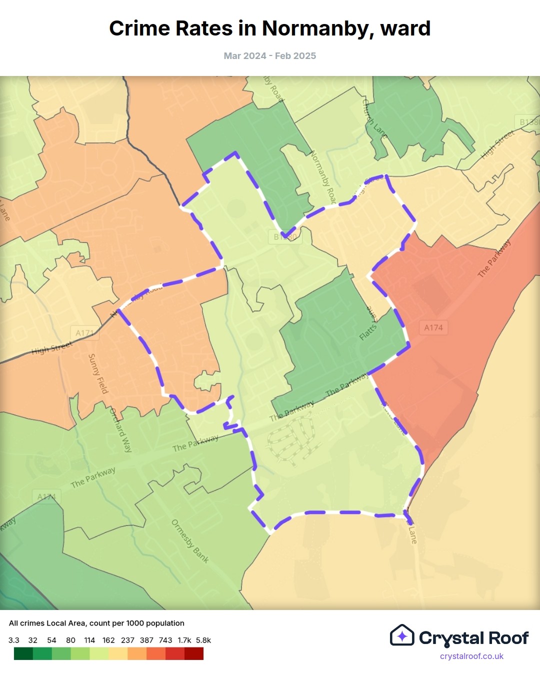 Normanby, (ward) includes areas with the following crime ratings (see map):