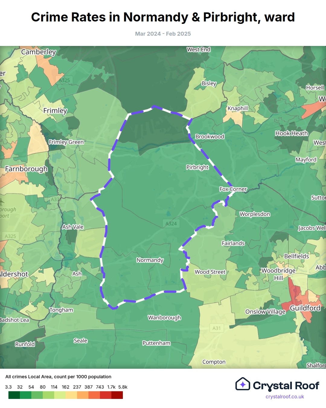 Normandy & Pirbright, (ward) includes areas with the following crime ratings (see map):