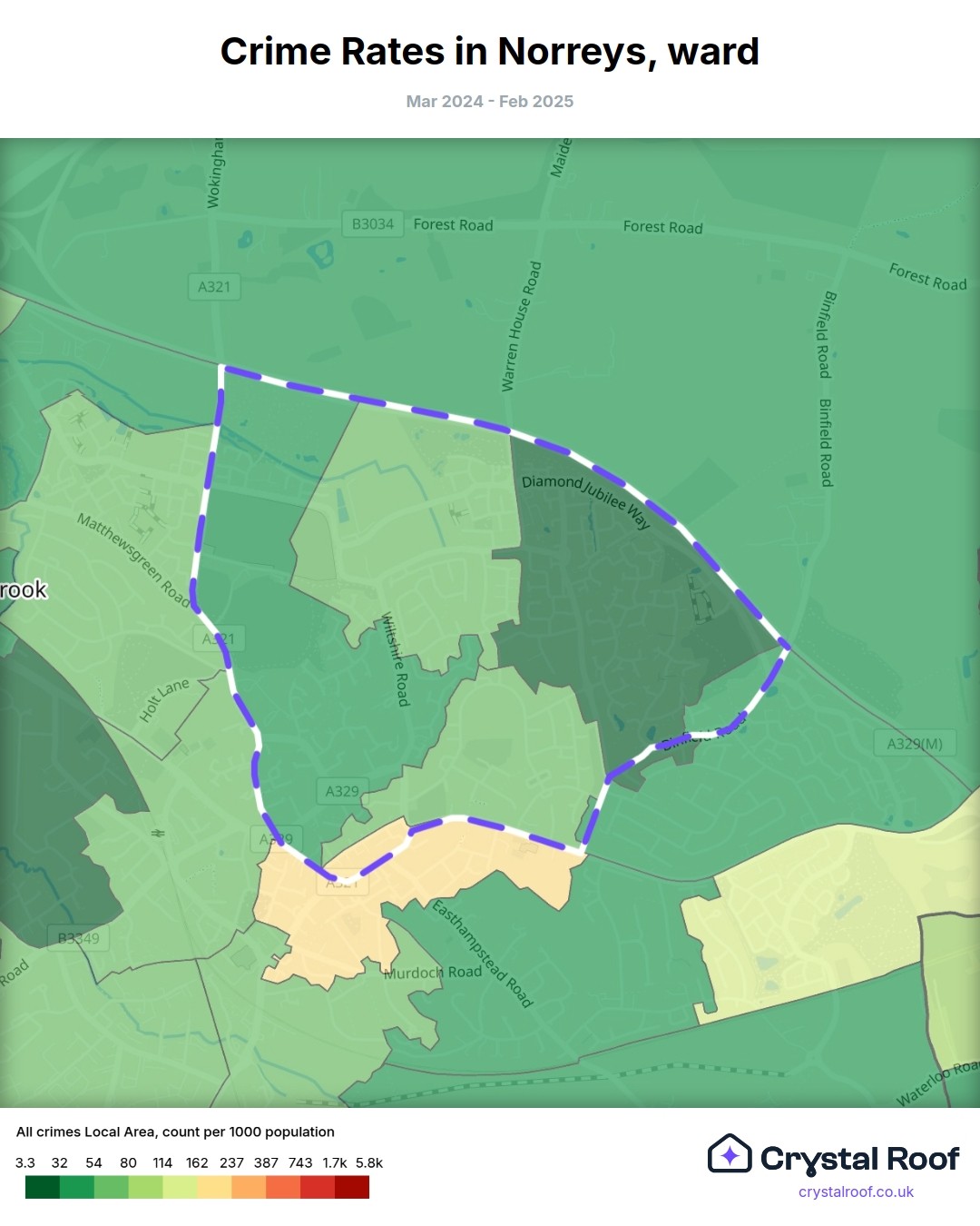 Norreys, (ward) includes areas with the following crime ratings (see map):