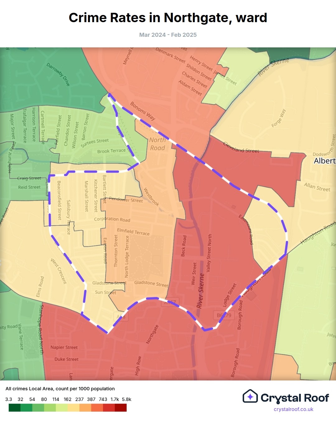 Northgate, (ward) includes areas with the following crime ratings (see map):