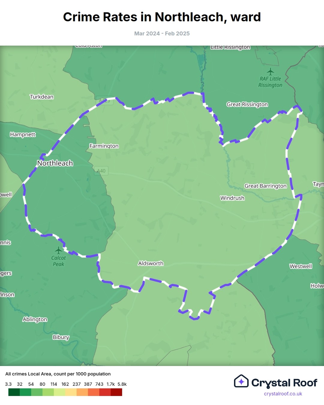 Northleach, (ward) includes areas with the following crime ratings (see map):