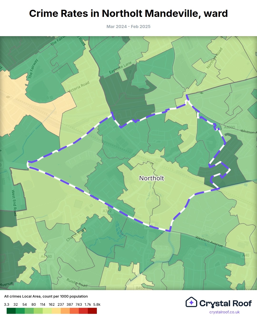 Northolt Mandeville, (ward) includes areas with the following crime ratings (see map):