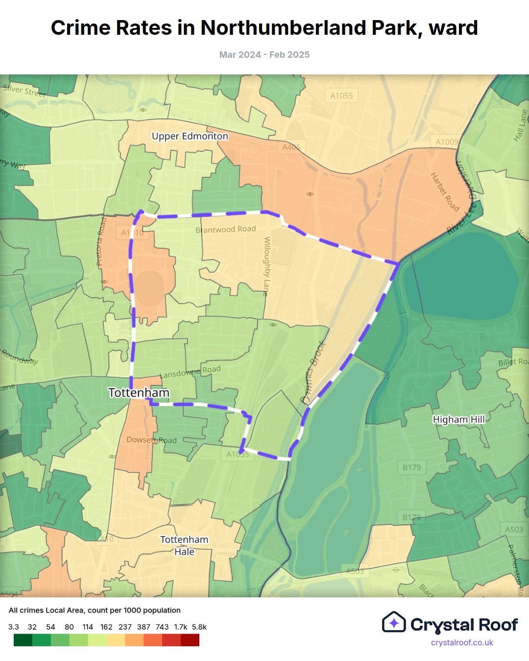 Northumberland Park, (ward) includes areas with the following crime ratings (see map):