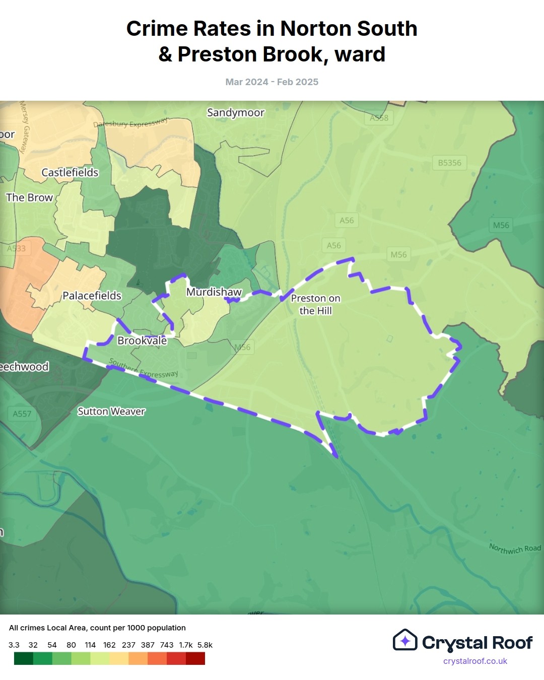 Norton South & Preston Brook, (ward) includes areas with the following crime ratings (see map):
