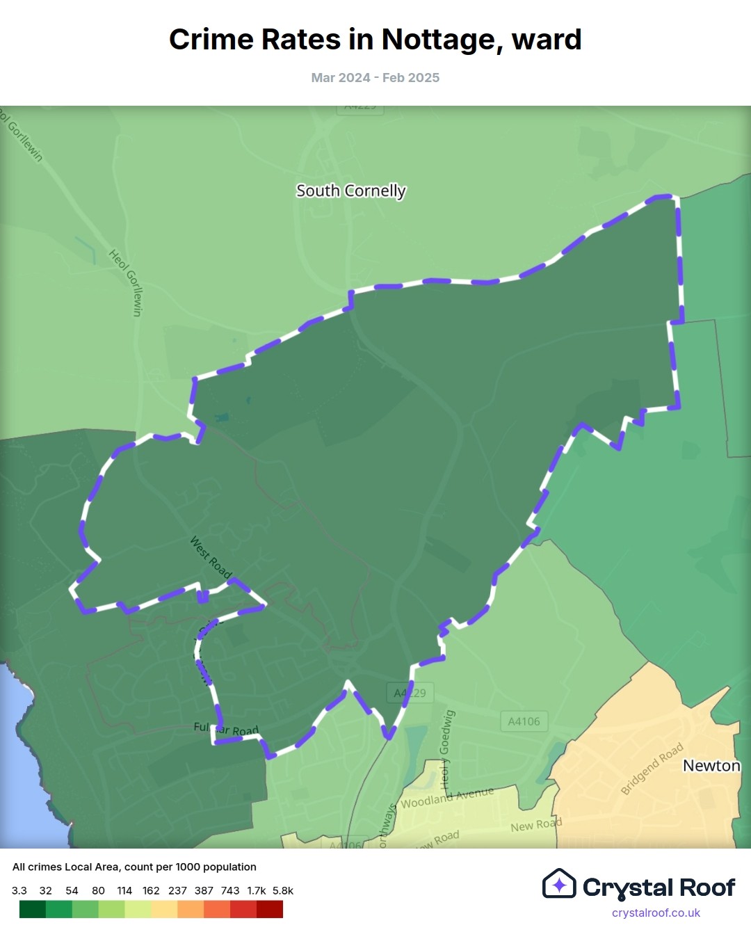 Nottage, (ward) includes areas with the following crime ratings (see map):
