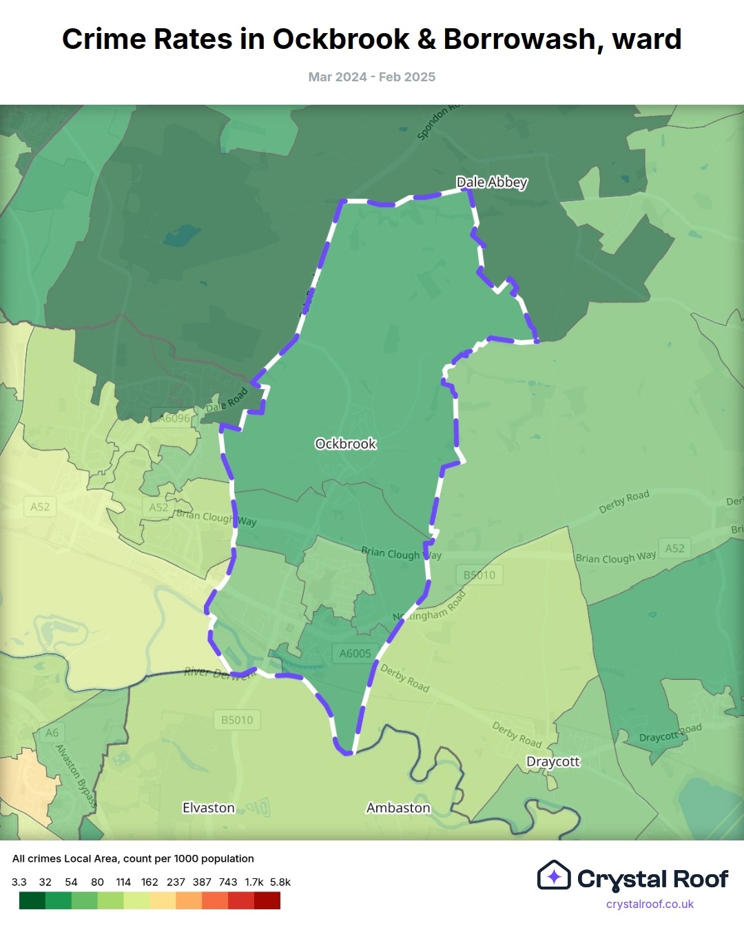 Ockbrook & Borrowash, (ward) includes areas with the following crime ratings (see map):