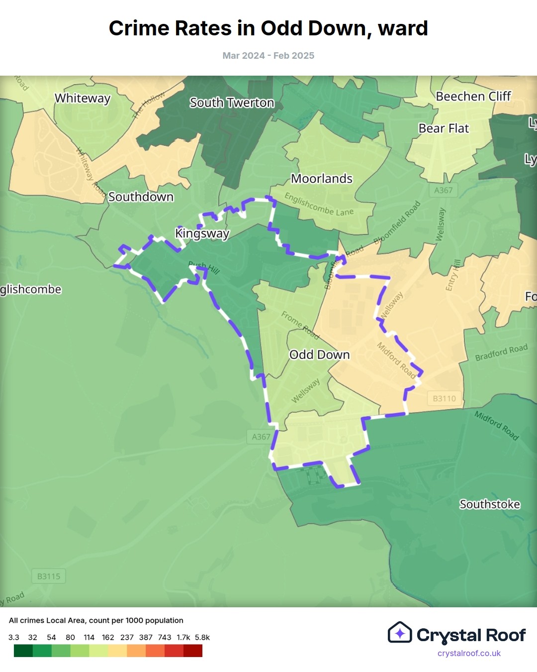 Odd Down, (ward) includes areas with the following crime ratings (see map):