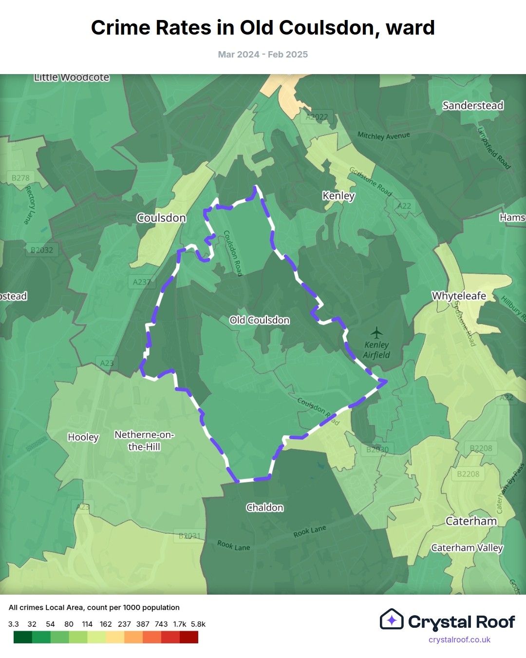 Old Coulsdon, (ward) includes areas with the following crime ratings (see map):