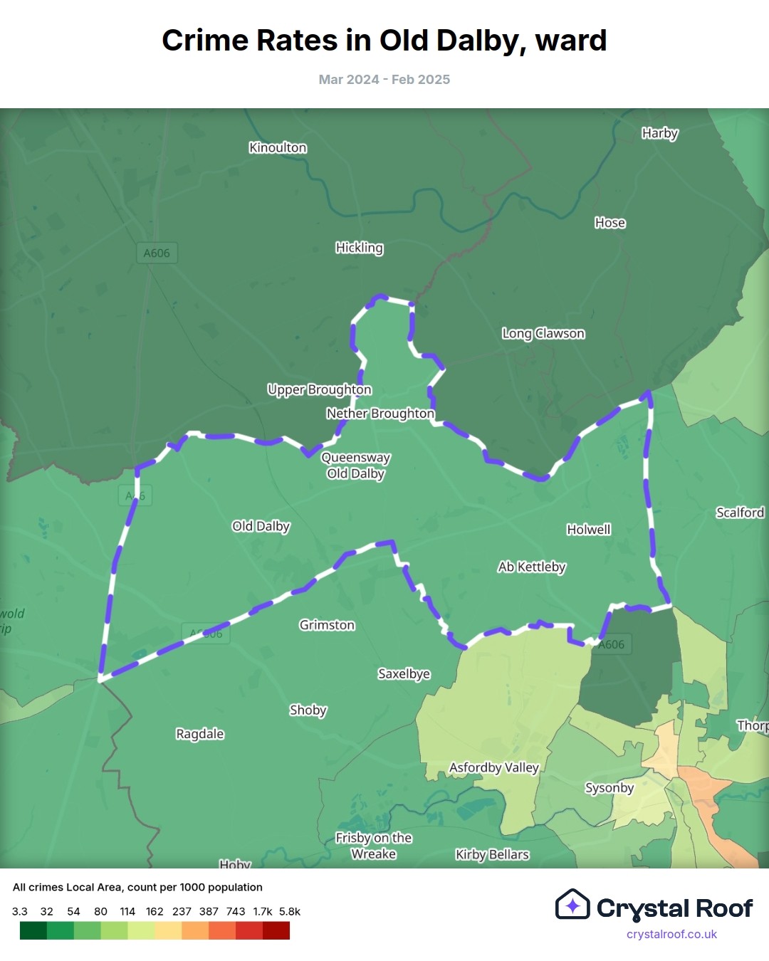 Old Dalby, (ward) includes areas with the following crime ratings (see map):