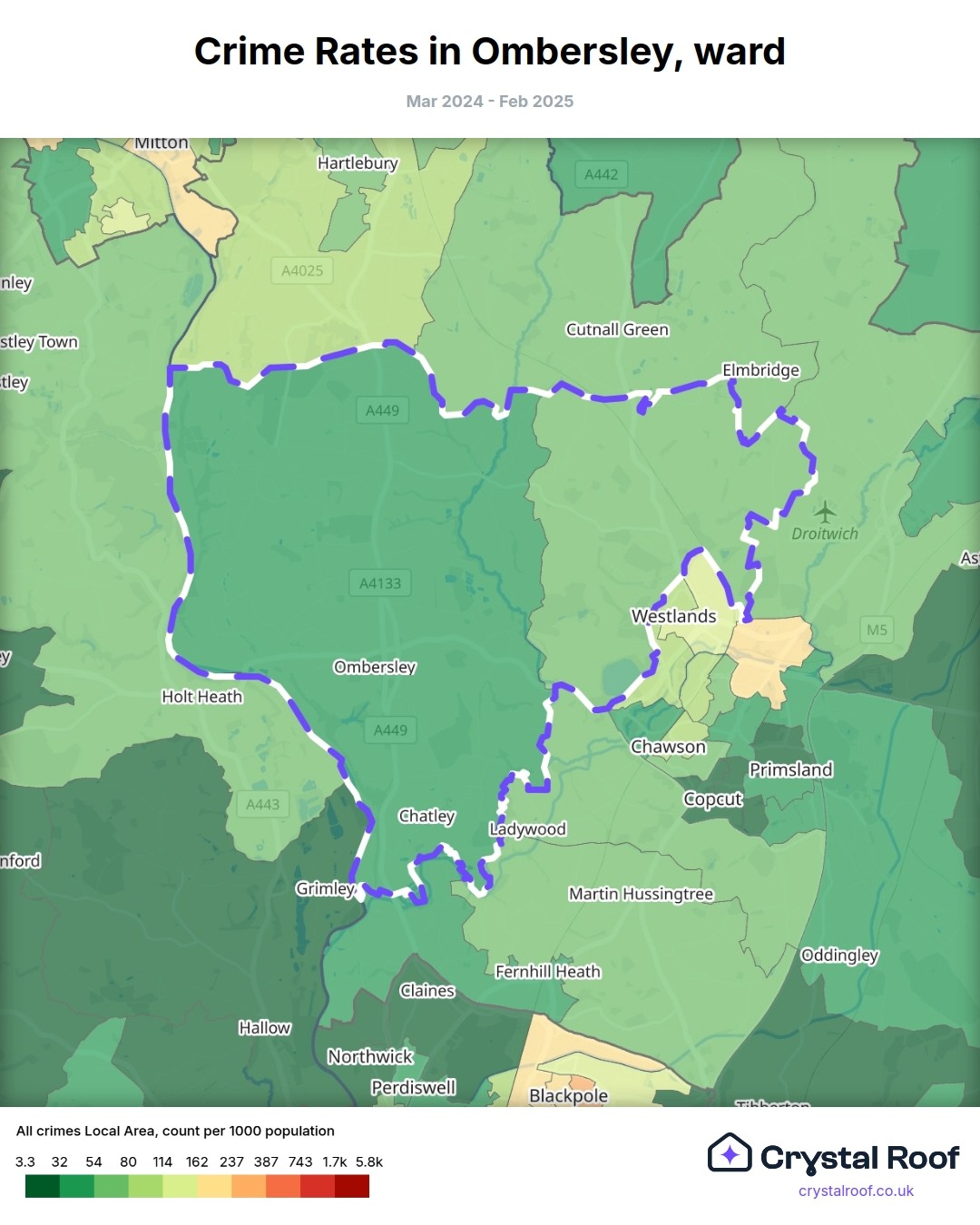 Ombersley, (ward) includes areas with the following crime ratings (see map):
