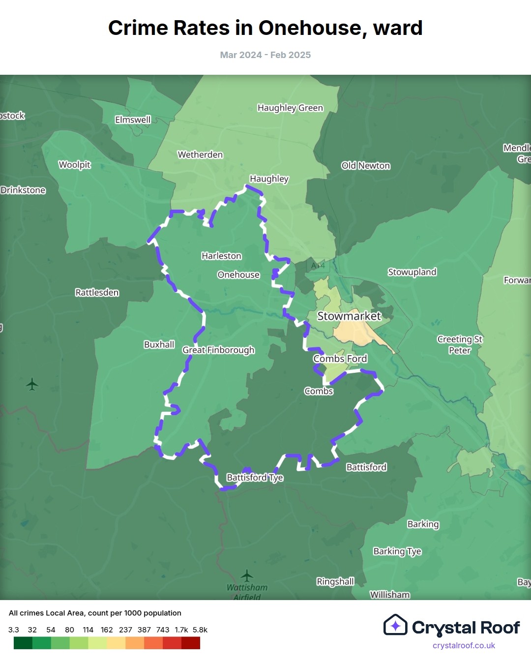 Onehouse, (ward) includes areas with the following crime ratings (see map):