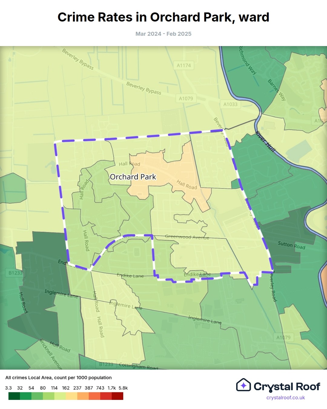 Orchard Park, (ward) includes areas with the following crime ratings (see map):