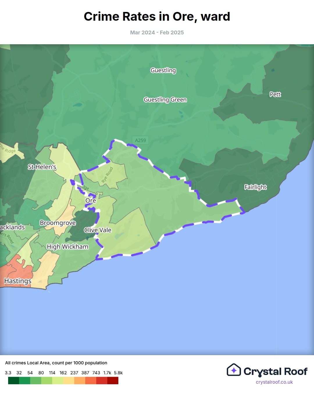 Ore, (ward) includes areas with the following crime ratings (see map):